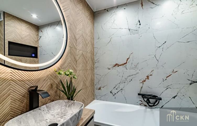 Apartament jest wykończony z dbałością o każdy detal, z użyciem materiałów najwyższej jakości.